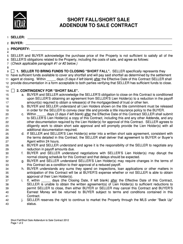 Get the free Short Sale Addendum to Sale Contract