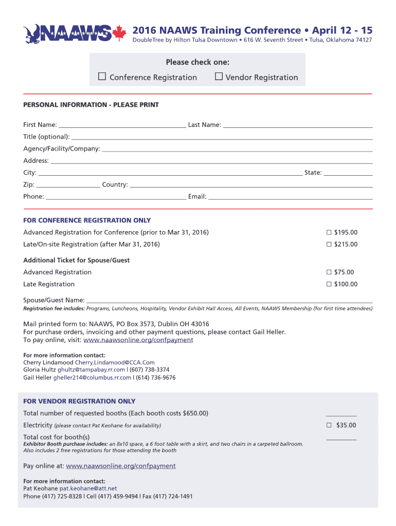 How to fill out 2016 naaws training conference: