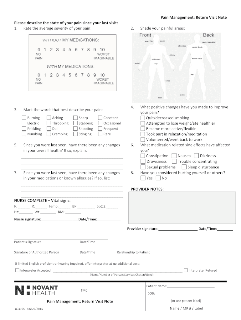 Get the free NHTMC Pain Management Return Visit Note 803195 NHTMC Pain Management Return Visit No...