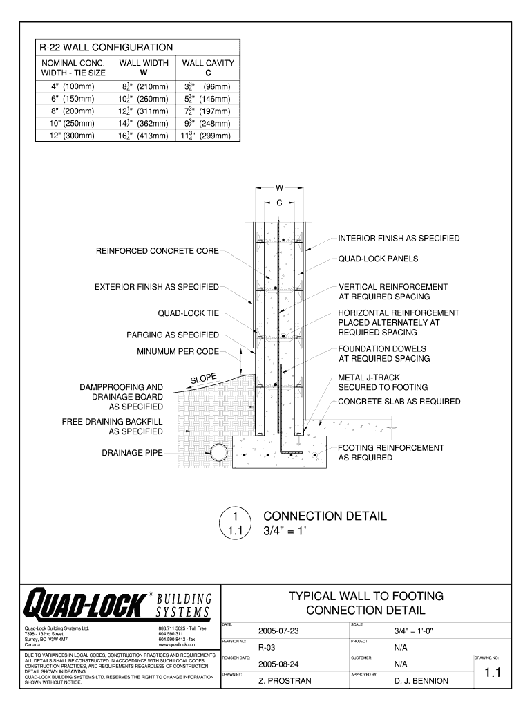 R22 WALL CONFIGURATION NOMINAL CONE. WIDTH TIE SIZE WALL WIDTH W 4 (100 mm) 1 84 (210 mm) 6 (150 mm) 8 (200 mm) 10 (250 mm) 12 (300 mm) 1 104 1 124 1 144 1 164 (260 mm) (311 mm) (362 mm)
