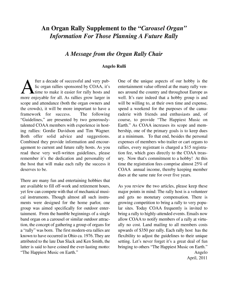 Get the free An Organ Rally Supplement to the Carousel Organ - coaa