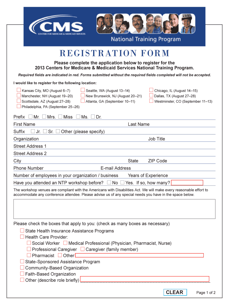This document serves as an application for individuals to register for the 2013 National Training Program organized by the Centers for Medicare & Medicaid Services, detailing necessary information