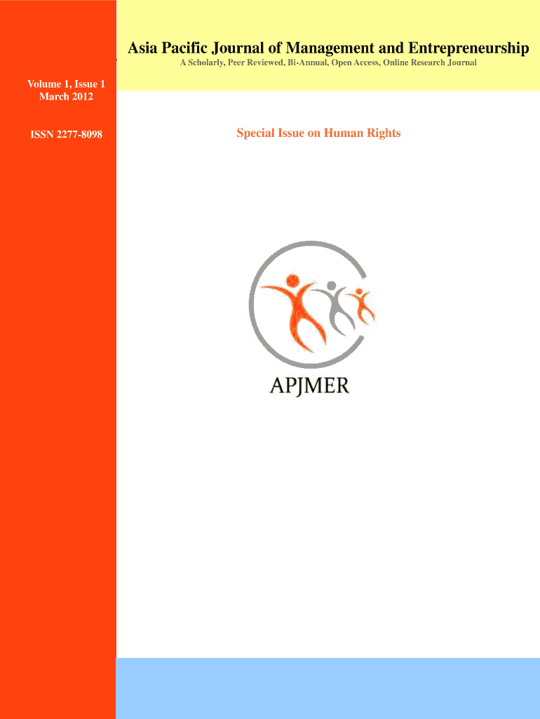 Asia Pacific Journal of Management and Entrepreneurship ISSN 22778098 Volume 1, Issue 1, March 2012 A Scholarly, Peer Reviewed, Biannual, Open Access, Online Research Journal Volume 1, Issue 1 March