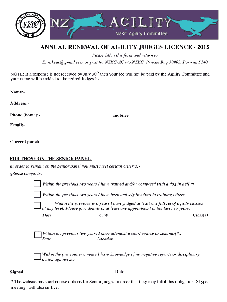Get the free Annual Renewal of Agility Judges Licence 2014 final