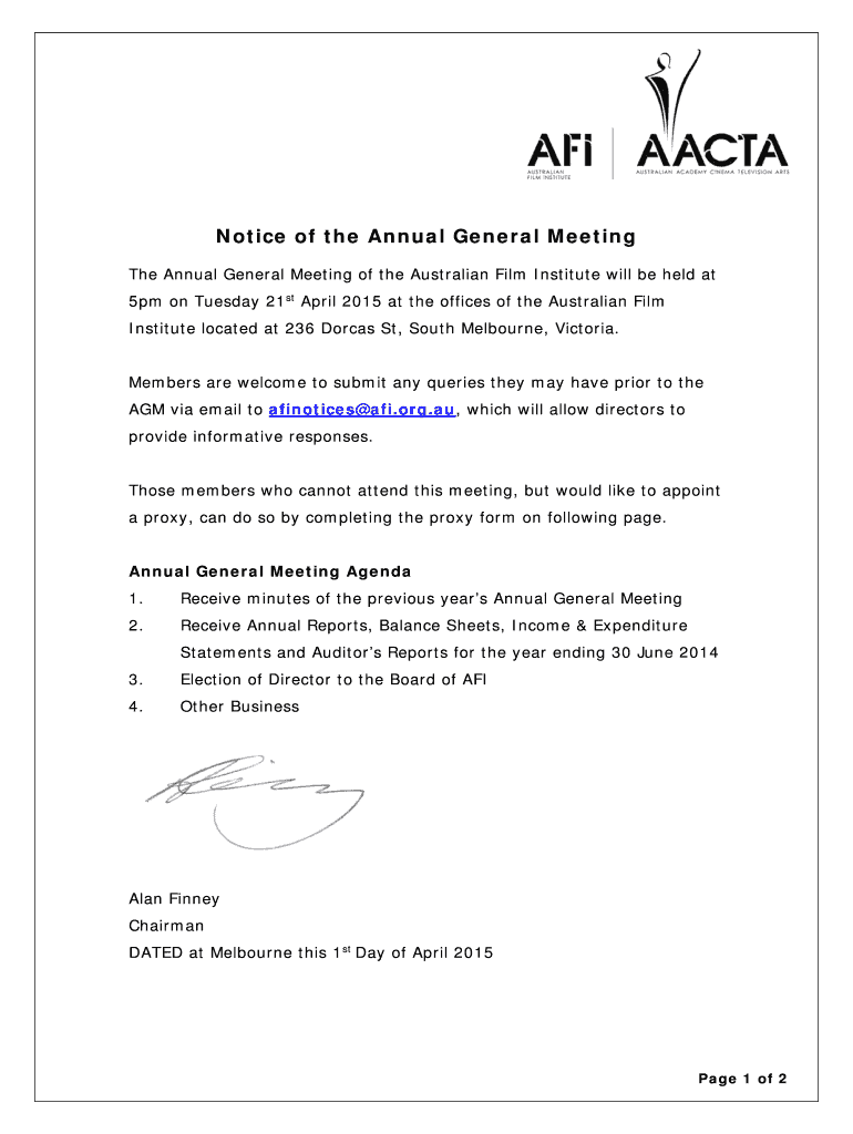 5pm on Tuesday 21st April 2015 at the offices of the Australian Film