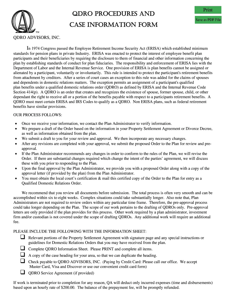 Get the free QDRO Procedures and Info Sheet Form v3 03102012.doc - qdroadvisors