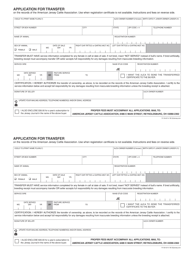 Get the free American Jersey Cattle Association Transfer Form