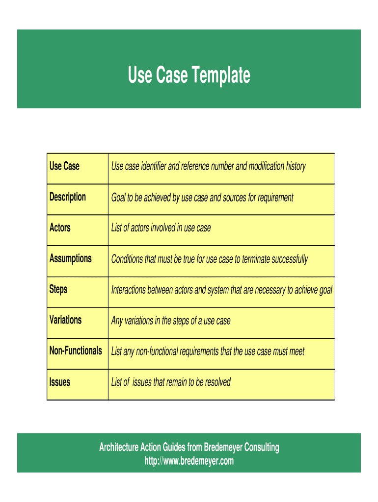 Typically, project managers, business analysts, and system architects are required to file Use Case Templates as part of requirement gathering and analysis processes.
