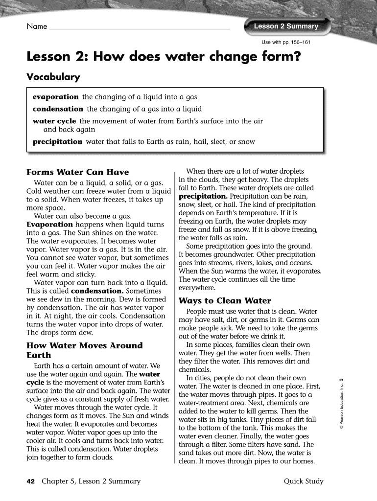 Get the free Use with pp 156161 Lesson 2 How does water change form - portageparkschool