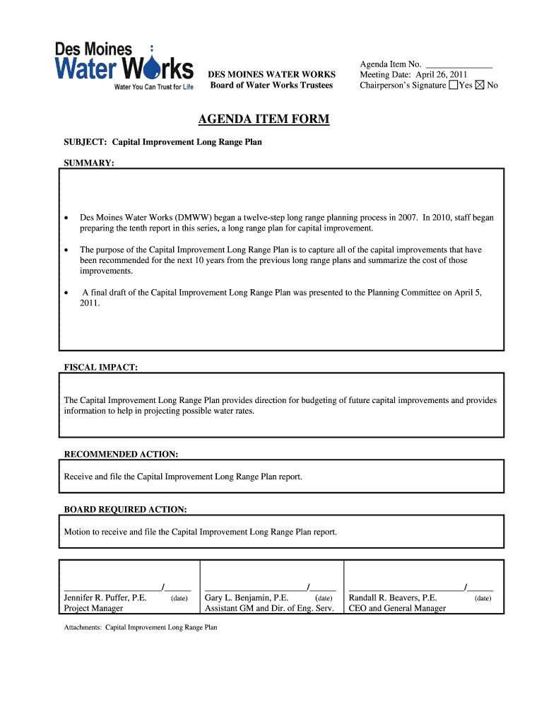 Get the free SUBJECT Capital Improvement Long Range Plan