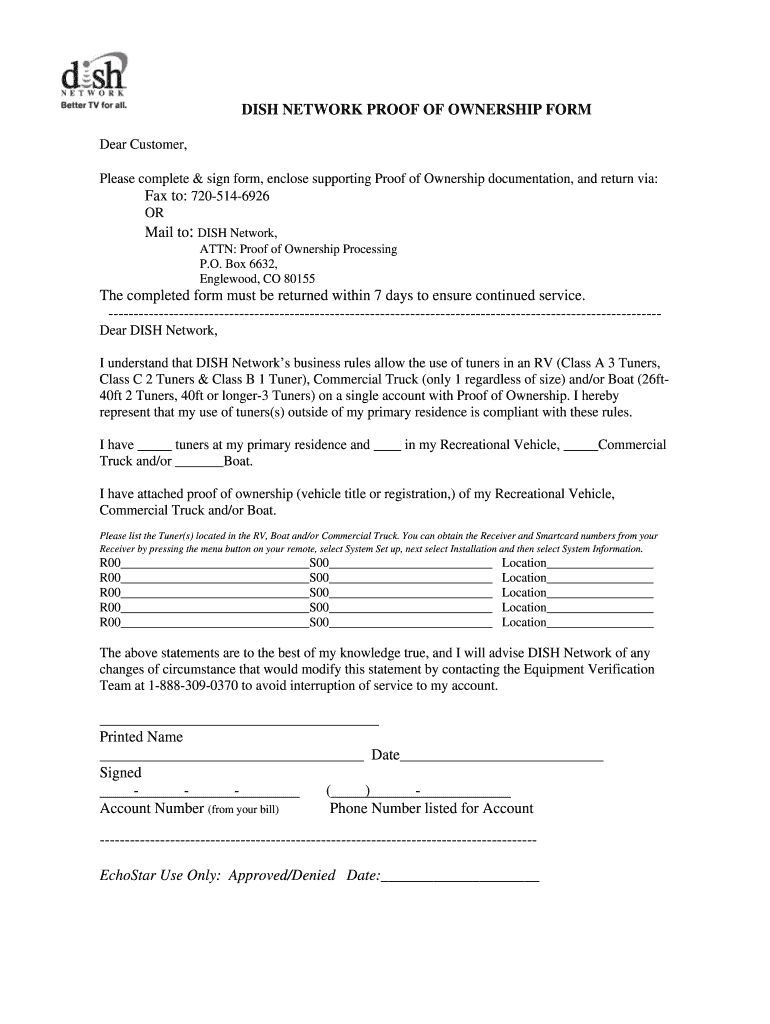 Get Started with the DISH Network Proof of Ownership Form Today!