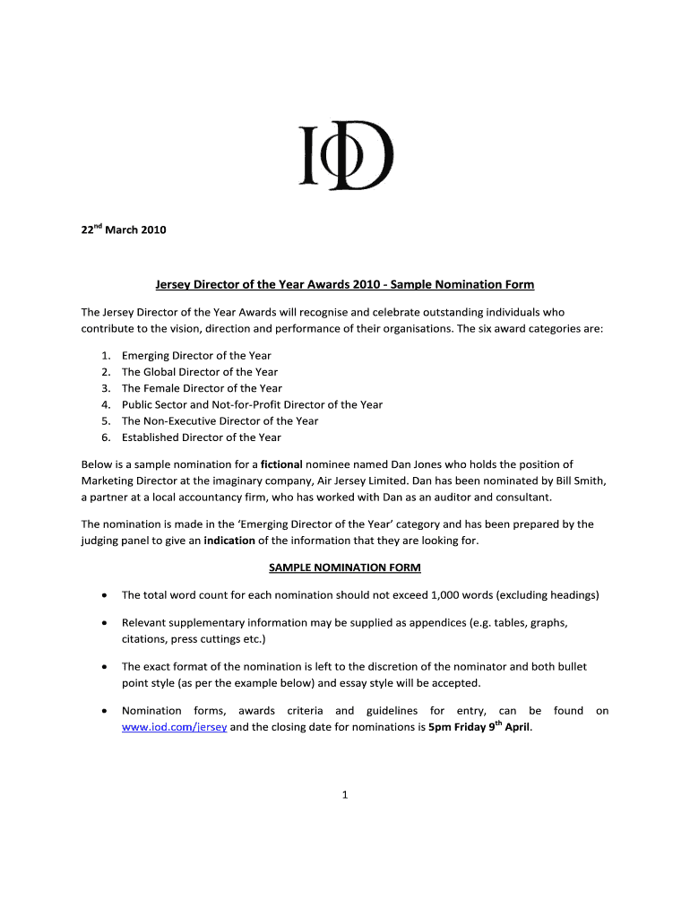 How to fill out Jersey Director of the Year Awards 2010 - Sample Nomination Form?