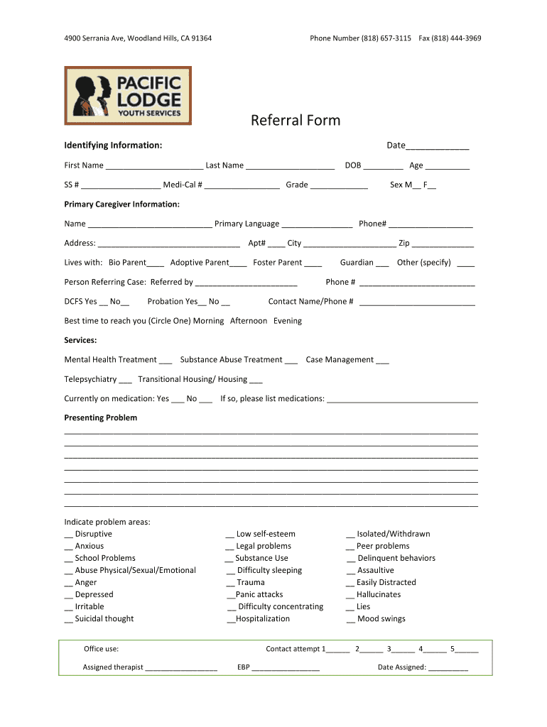?3115 Fax (818× 444?3969. Referral form×b. Identifying Information:.