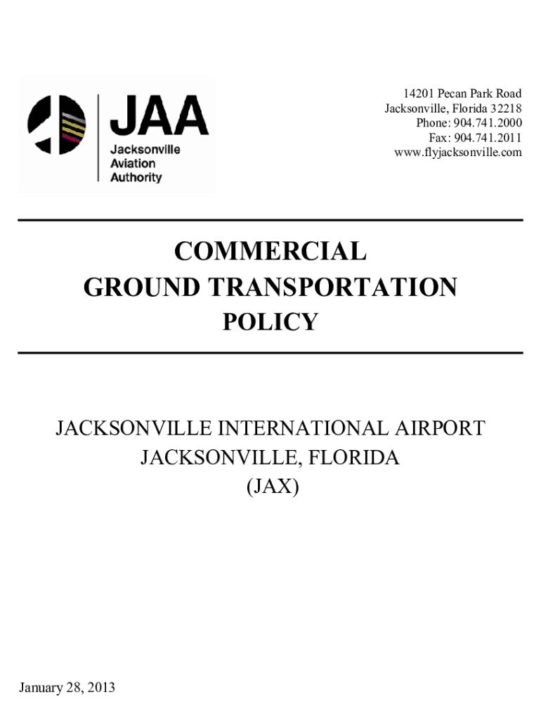 14201 Pecan Park Road Jacksonville, Florida 32218 Phone: 904.741.2000 Fax: 904.741.2011 www.flyjacksonville.comCOMMERCIAL GROUND TRANSPORTATION POLICYJACKSONVILLE INTERNATIONAL AIRPORT JACKSONVILLE,