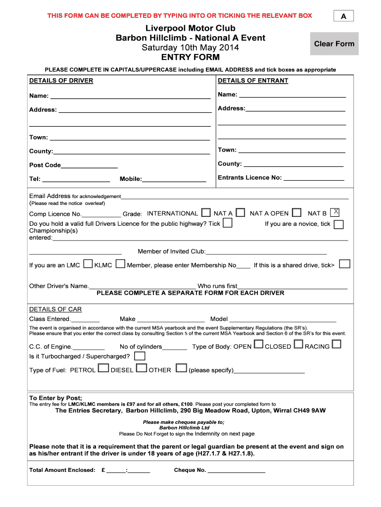 Start by obtaining the form from Liverpool Motor Club. It can usually be found on their website or requested through other means.