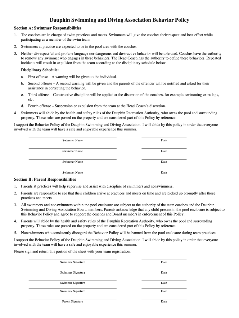 Get the free Dauphin Swimming and Diving Association Behavior Policy - swimdauphin