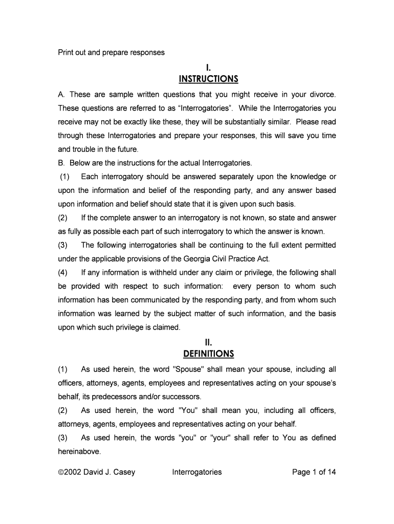 Get the free Georgia Divorce Interrogatories