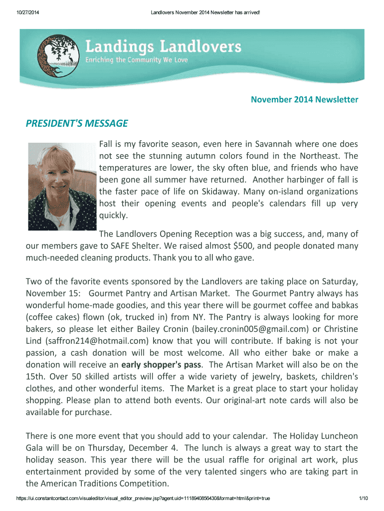 Email, fax, or share your november 2014 newsletter president form via URL. You can also download, print, or export forms to your preferred cloud storage service.