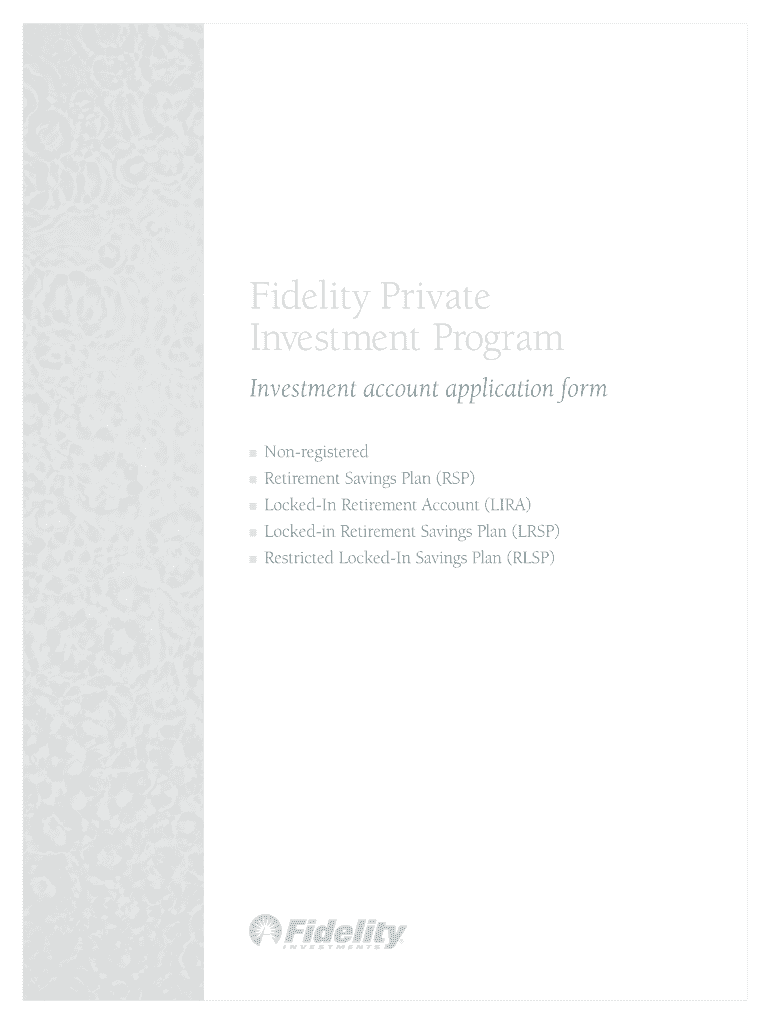 Fidelity Private Investment Program Investment account application form I I I I I Nonregistered Retirement Savings Plan (RSP) Locked In Retirement Account (LIRA) Locke din Retirement Savings Plan