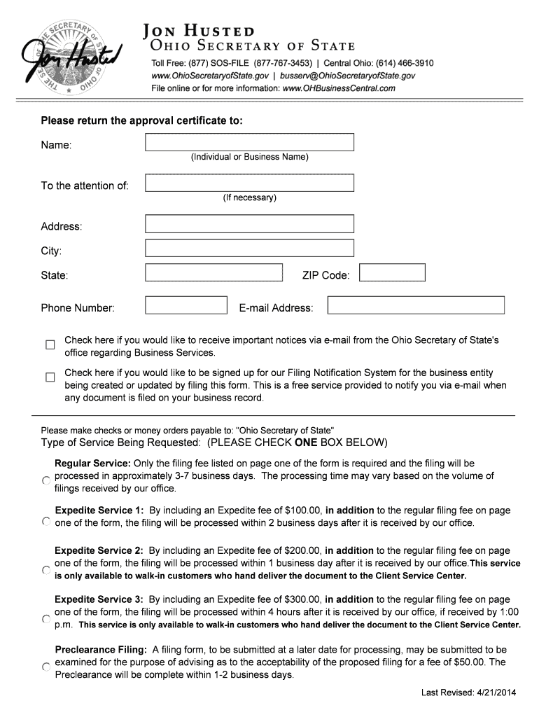 ... advising as to the acceptability of the proposed filing for a fee of $50.00. The. Clearance will be complete within 1-2 business days. Last Revised: 4×21/2014 ...