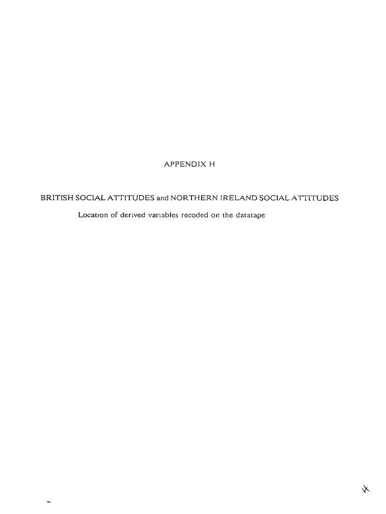 APPENDIX H BRITISH SOCIAL ATTITUDES and NORTHERN IRELAND SOCIAL ATTITUDES Location OF derived variables recorded on the datatype LOCATION OF DERIVED VARIABLES RECORDED ON THE DATATYPE Variable Source