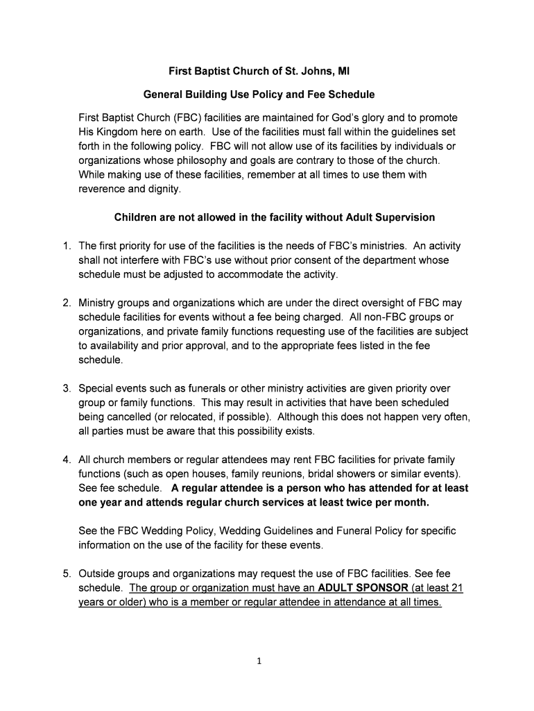 General Building Use Policy and Fee Schedule