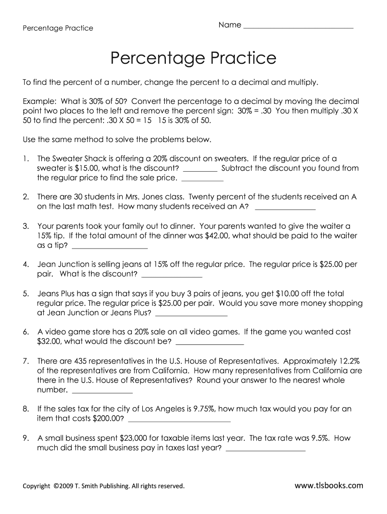 Students: Percentage practice word problems are particularly beneficial for students, as they help reinforce the understanding and application of percentages. Whether it is for elementary school, middle school, or high school students, practicing percentage word problems allows them to solidify their knowledge and develop problem-solving skills.