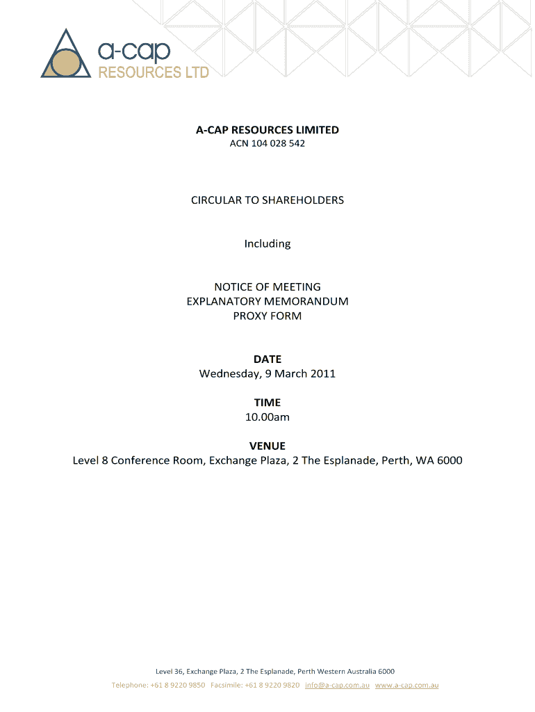 Get the free Notice of Meeting 9 March 2011.pdf - A-Cap Resources