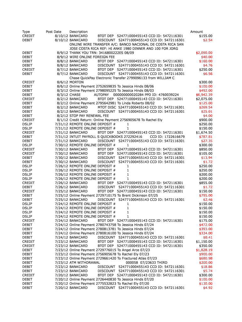 CREDIT DEBIT Post Date