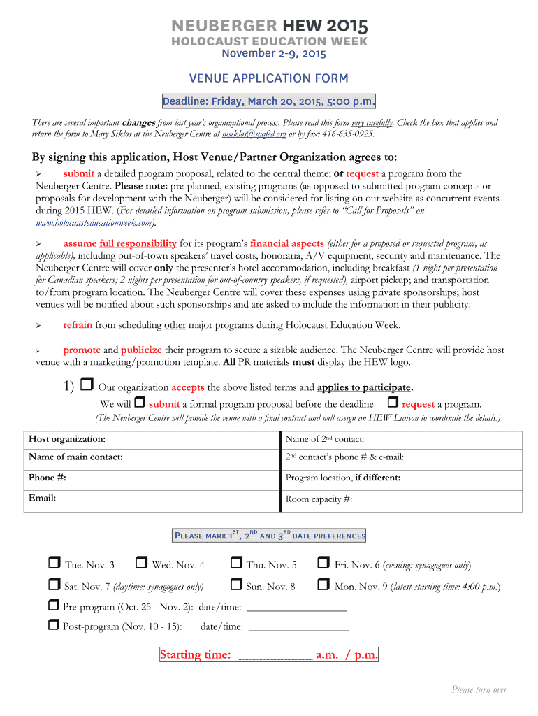 There are several important changes from last year's organizational process. Please read this form very carefully. Check the box that applies and return the form to Mary Silos at the Berger Center