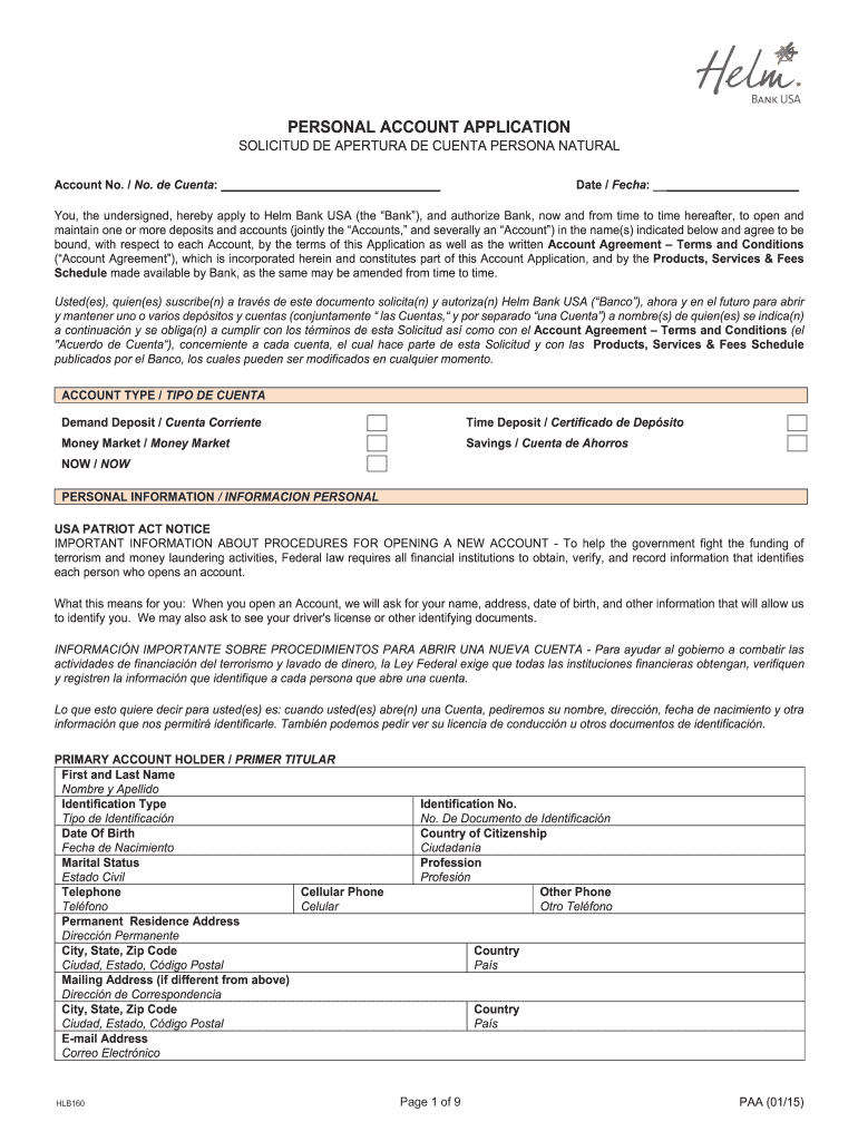 Get the free PERSONAL ACCOUNT APPLICATION - Helm Bank USA