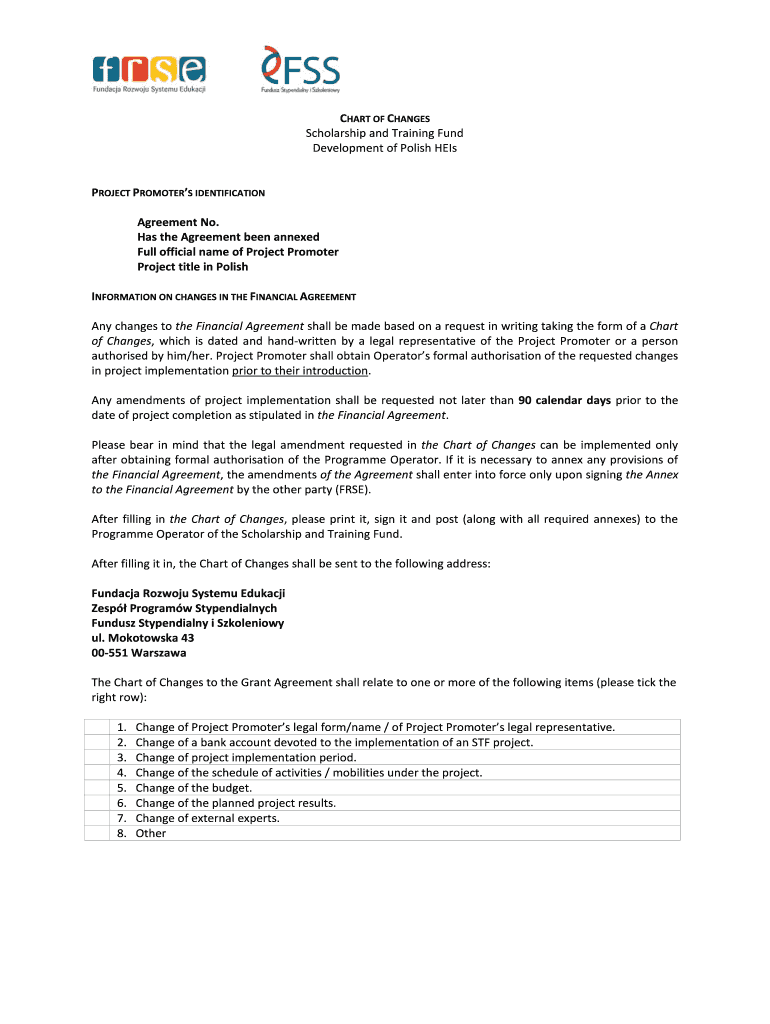 Get the free INFORMATION ON CHANGES IN THE FINANCIAL AGREEMENT - fssorgpl - fss org