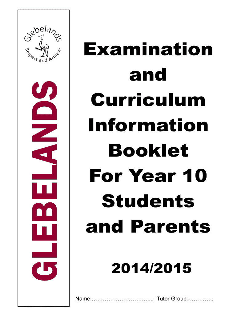 Get the free Examination and Curriculum Information Booklet For Year 10 - glebelands surrey sch