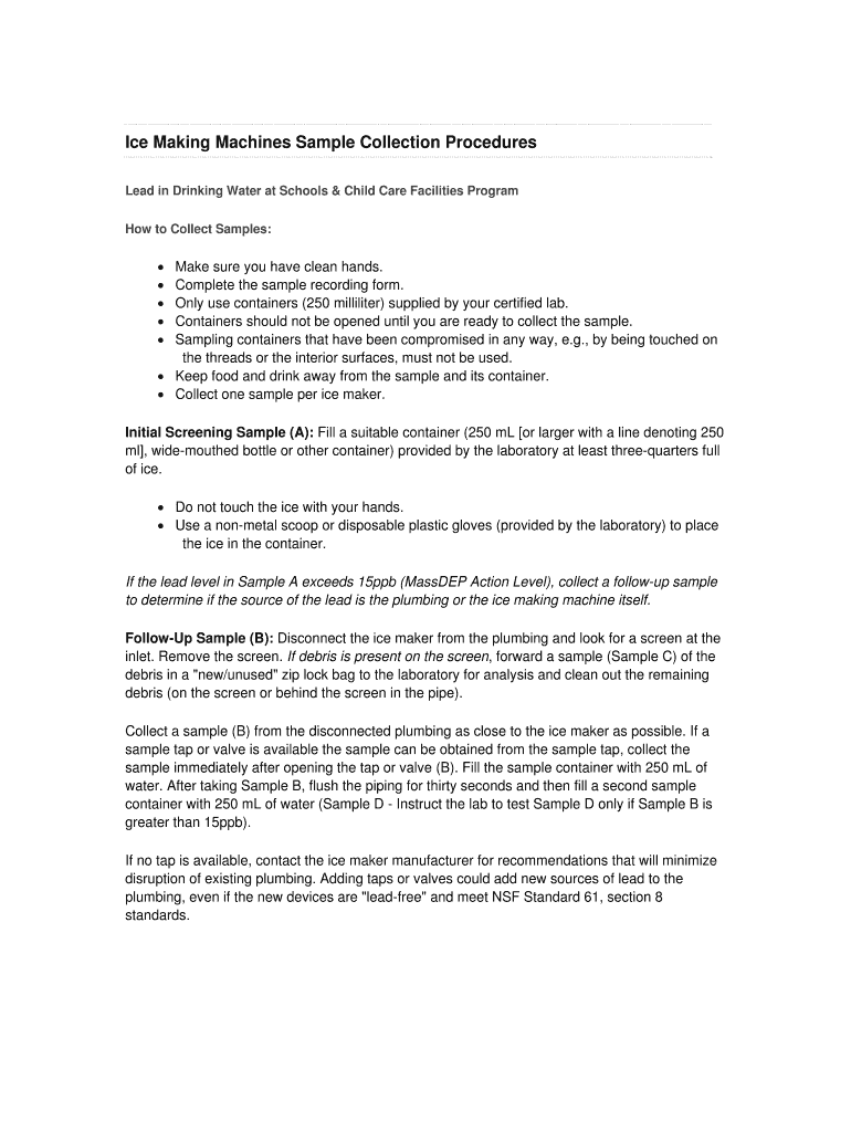 Get the free Ice Making Machines Sample Collection Procedures - MassGov
