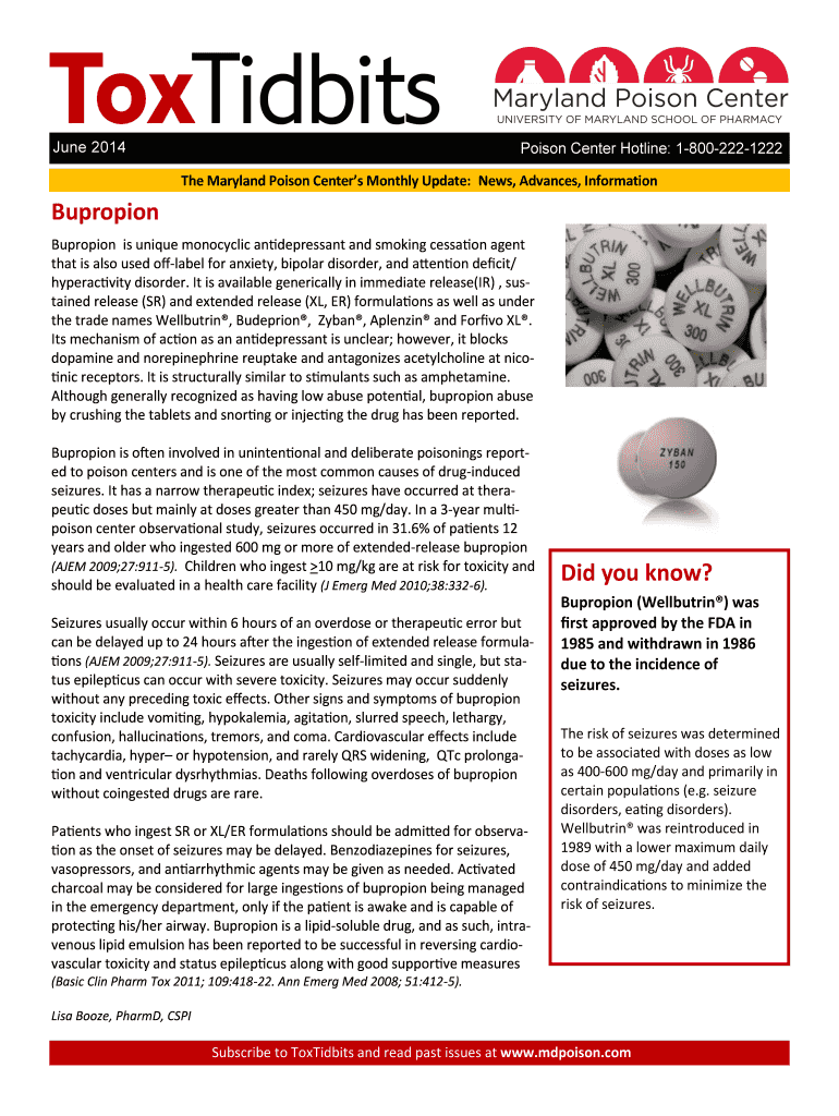 The Maryland Poison Centers Monthly Update: News, Advances, InformationBupropion