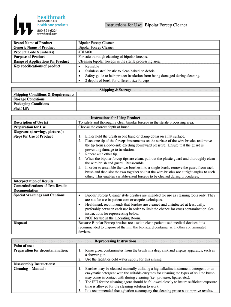 Get the free Instructions for Use: Bipolar Forcep Cleaner