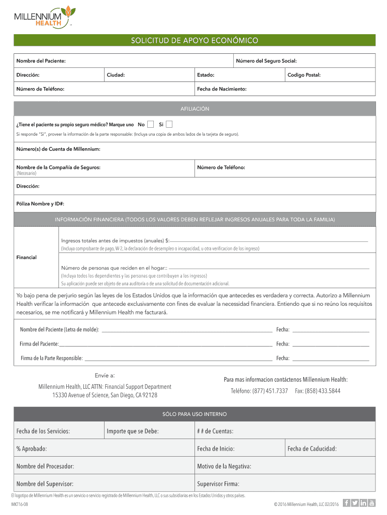 Individuals in need of financial support are required to file solicitud de apoyo económico.