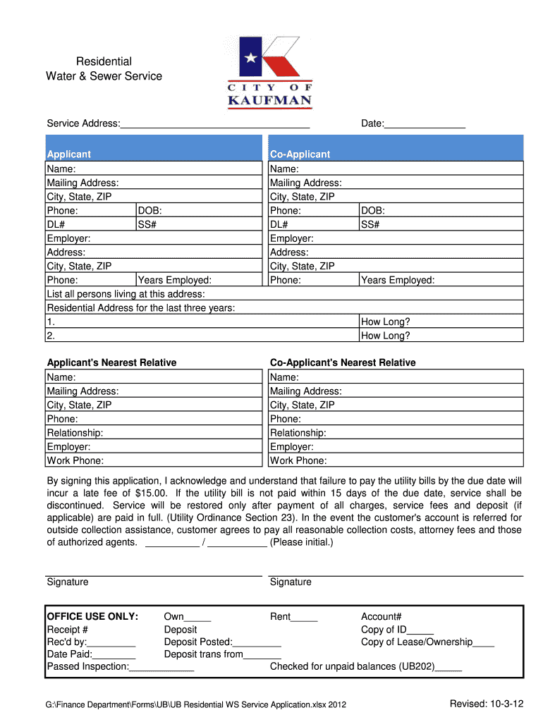 To qualify for the Residential Water & Sewer Service Application, individuals must meet specific requirements. Both the applicant and co-applicant must provide evidence of residency.
