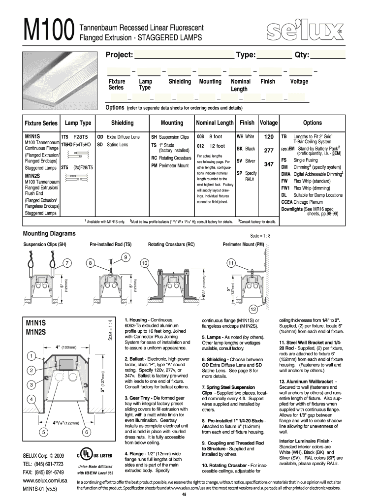 M100 O Tannenbaum Recessed Linear Fluorescent Flanked Extrusion STAGGERED LAMPS Project: Type: Fixture Series Lamp Type Options Shielding Mounting M1N1S Mounting Nominal Length Finish Voltage 008