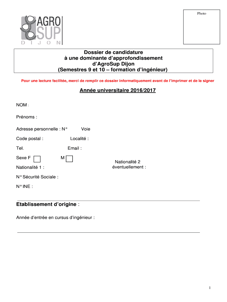 Photo Dossier DE candidature one dominant dapprofondissement group Dijon (Semesters 9 ET 10 formation dingier) Pour one lecture facility, merci DE repair CE dossier informatiquement savant DE improper