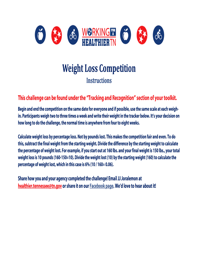 Weight Loss Competition Instructions This challenge can be found under the Tracking and Recognition section of your toolkit. Begin and end the competition on the same date for everyone and if possible,
