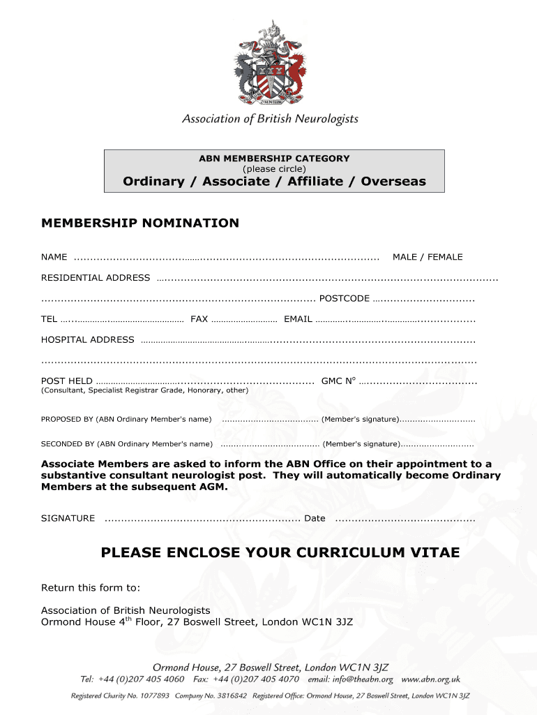 ABN MEMBERSHIP CATEGORY (please circle) Ordinary / Associate / Affiliate / Overseas MEMBERSHIP NOMINATION NAME .........................................................................................