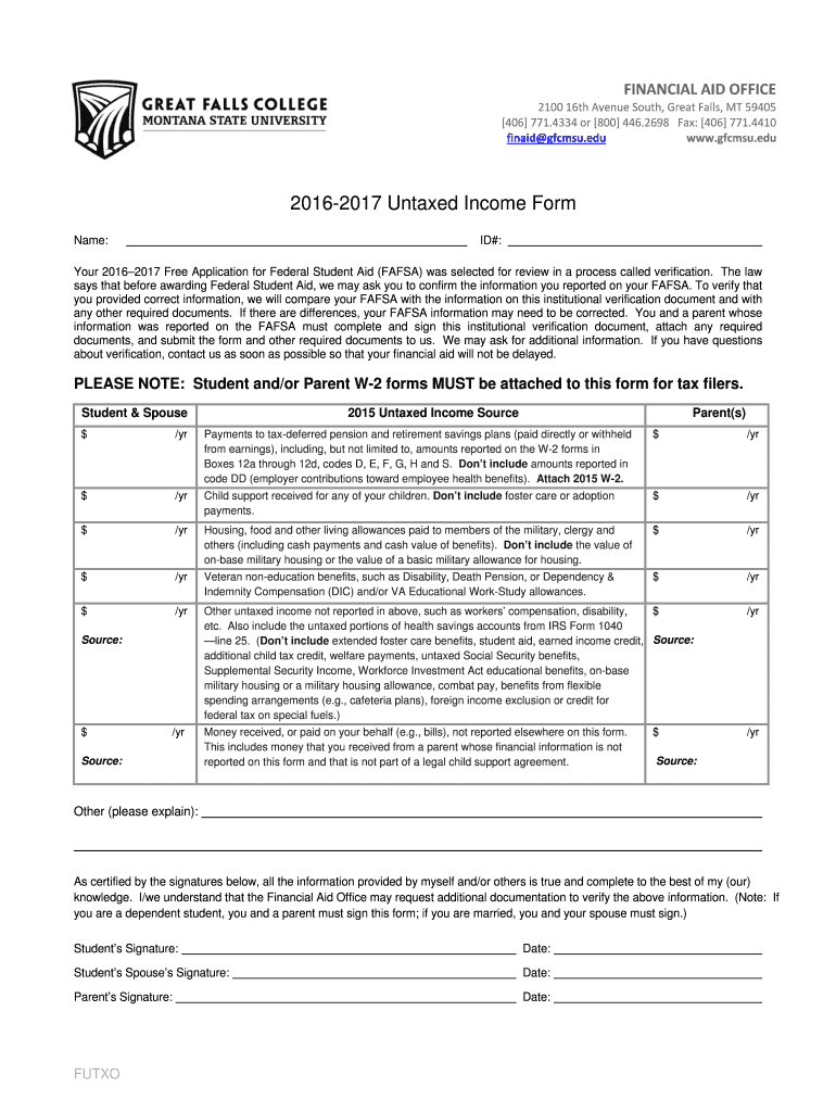 Get the edu 20162017 Untaxed Income Form Name: ID#: Your 20162017 Free Application for Federal St...