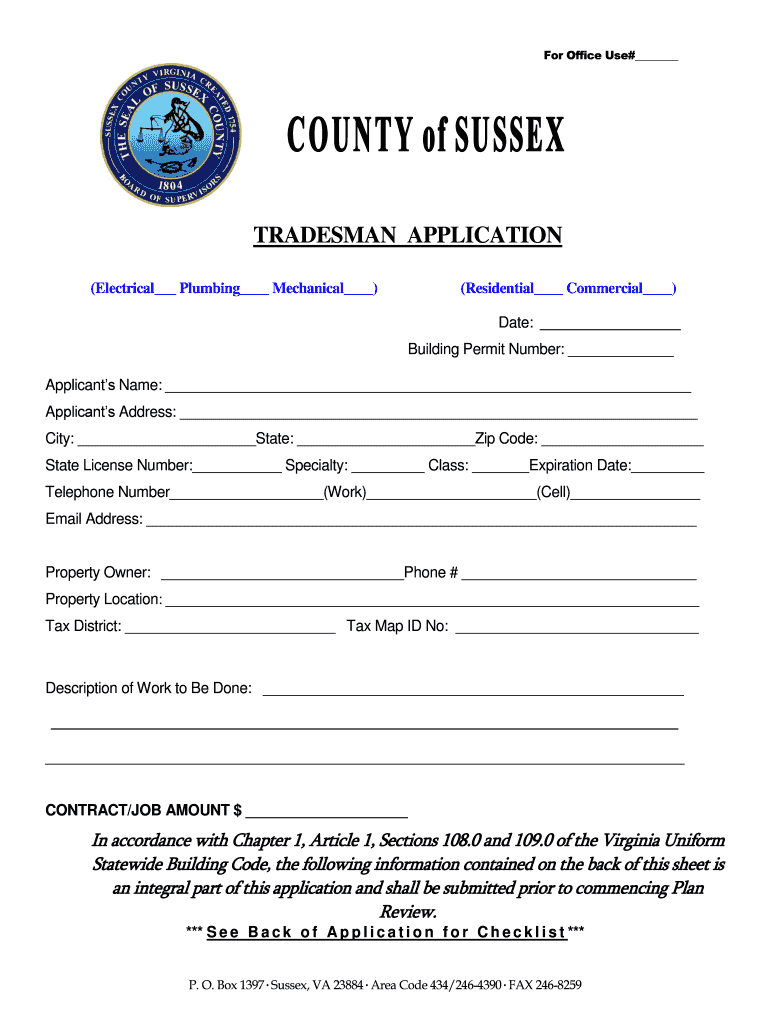 Applicants should be aware of the fees associated with the Virginia Tradesman Application, as these can vary based on the type of permit being sought. Additionally, deadlines for submission and processing times should be noted to avoid project delays.