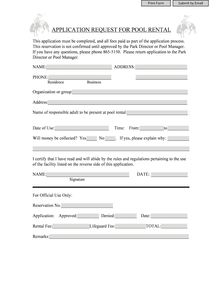 How to fill out APPLICATION REQUEST FOR POOL RENTAL?