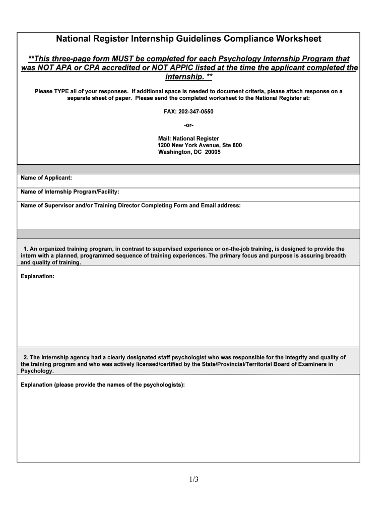 Get the free National Register Internship Guidelines Compliance Worksheet