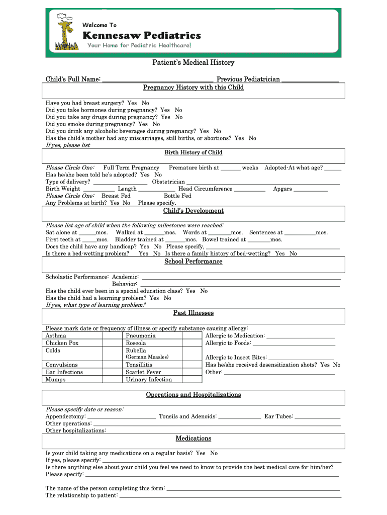 Get the free Patients Medical History - bkennesawpediatricsbbcomb