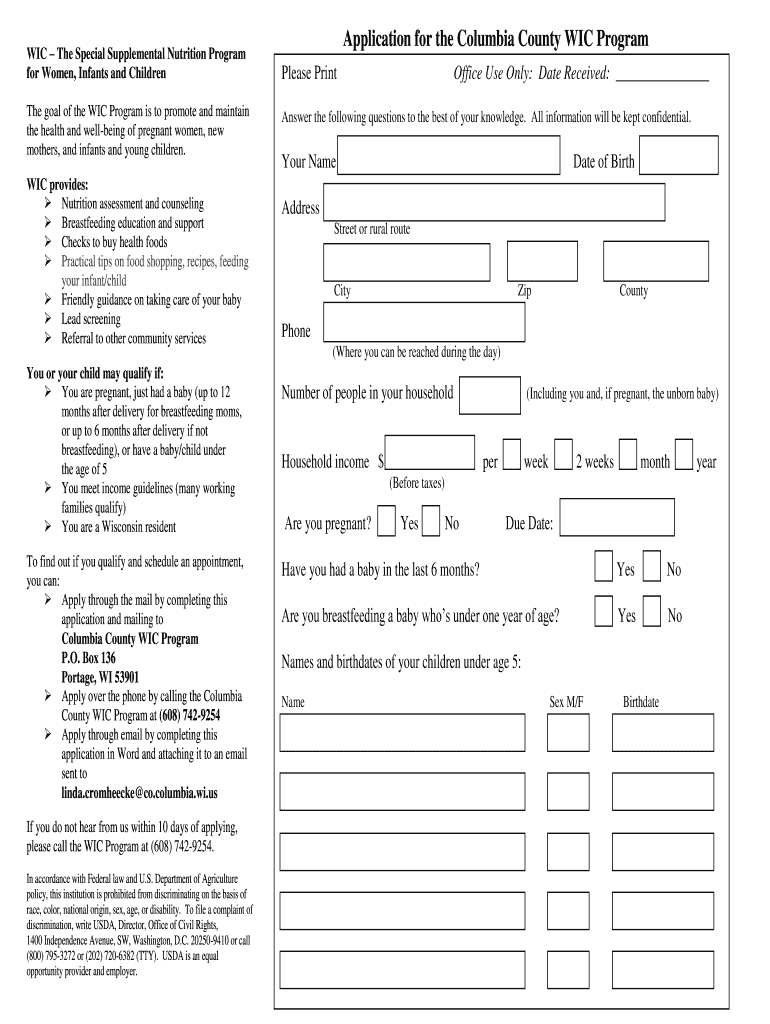 It is essential to note the contact details and submission methods specific to the Columbia County WIC Program. Deadlines for submissions might be applicable, so applicants should verify any important dates to ensure timely processing of their applications.
