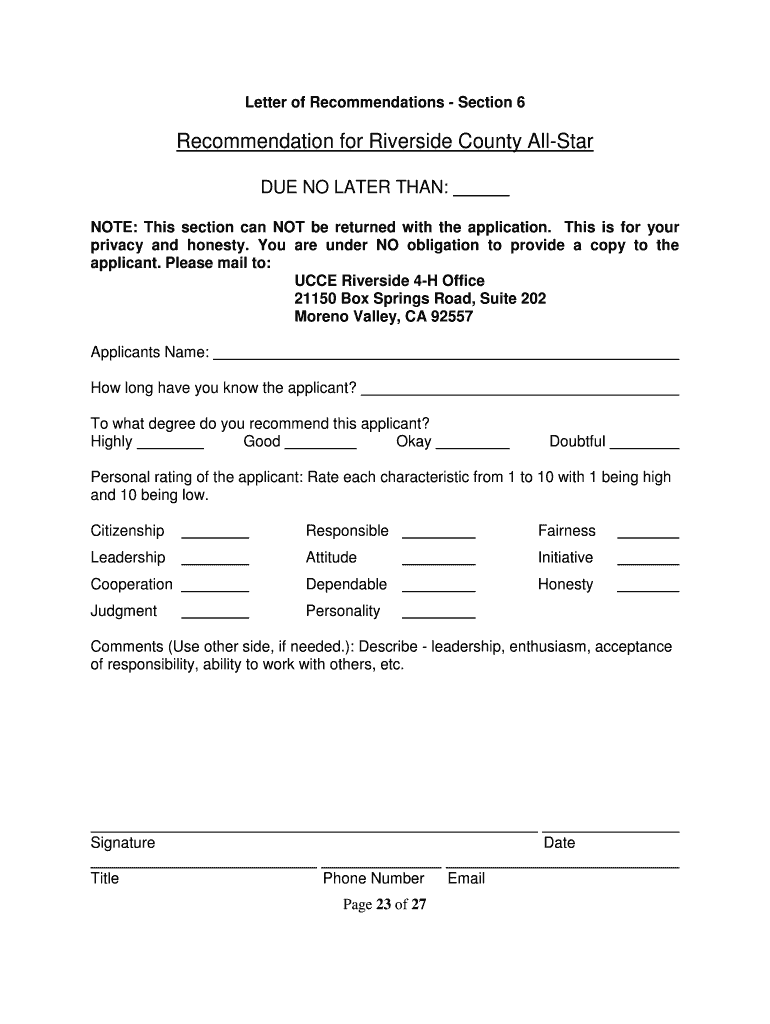 Get the free Star Letter of Recommendations - UCCE Riverside County - ceriverside ucanr