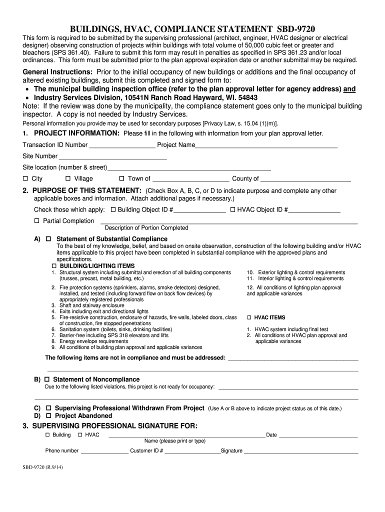 BUILDINGS, HVAC, COMPLIANCE STATEMENT SBD9720